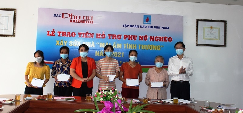 Ngày 24/6 tại Hà Nội, Tập đoàn Dầu khí Việt Nam (Petrovietnam) đã phối hợp với Báo Phụ nữ Thủ đô trao hỗ trợ 300 triệu đồng giúp các gia đình phụ nữ nghèo trên địa bàn Hà Nội sửa chữa, xây dựng nhà "Mái ấm tình thương".