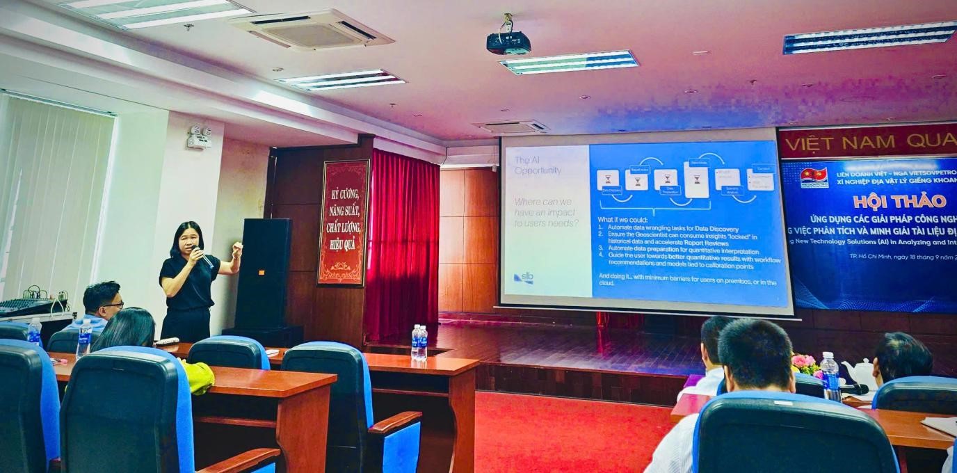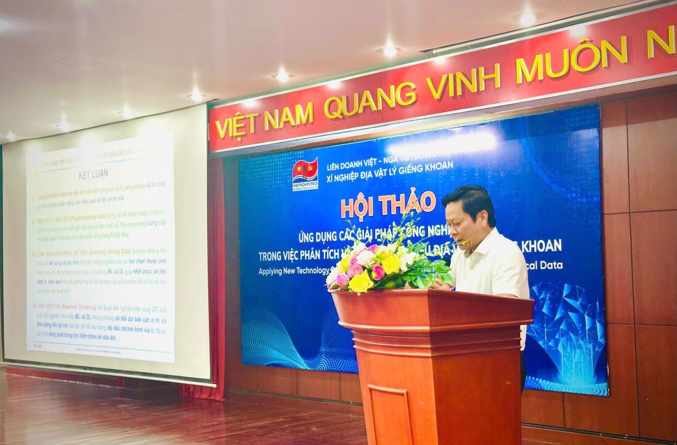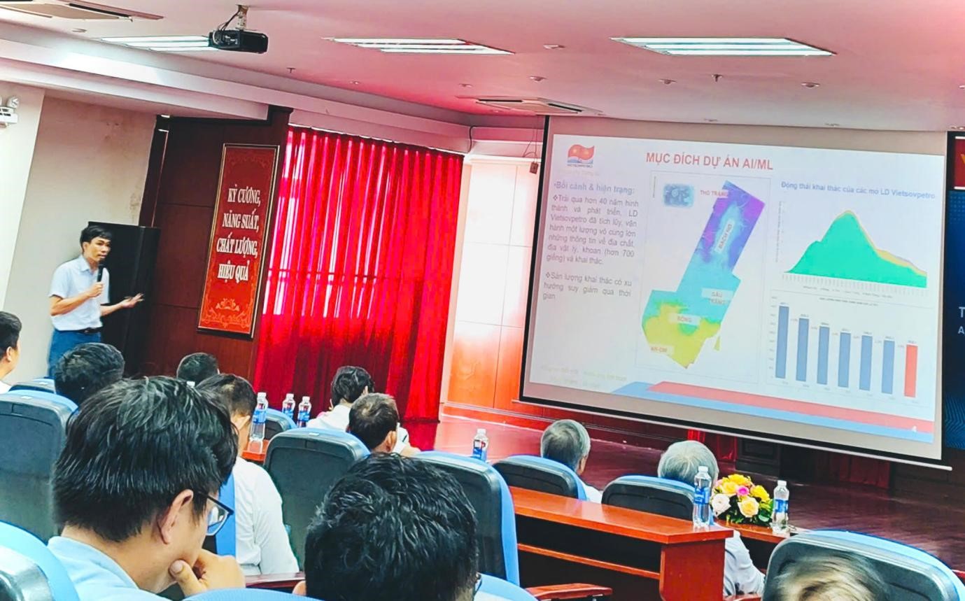 - “Ứng dụng AI/ML trong xử lý và minh giải tài liệu địa vật lý giếng khoan" do Trung tâm Phân tích & Xử lý số liệu (XN ĐVL) báo cáo.