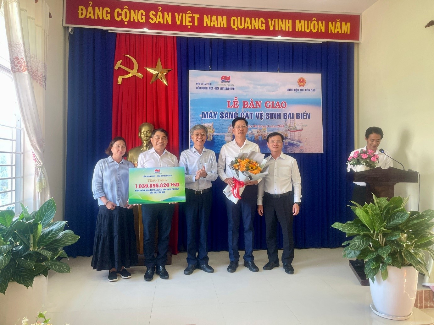 Hoạt động trao tặng máy sàng cát một lần nữa khẳng định cam kết của Vietsovpetro trong việc phát triển bền vững, hài hòa giữa tăng trưởng kinh tế với bảo vệ môi trường và trách nhiệm xã hội.